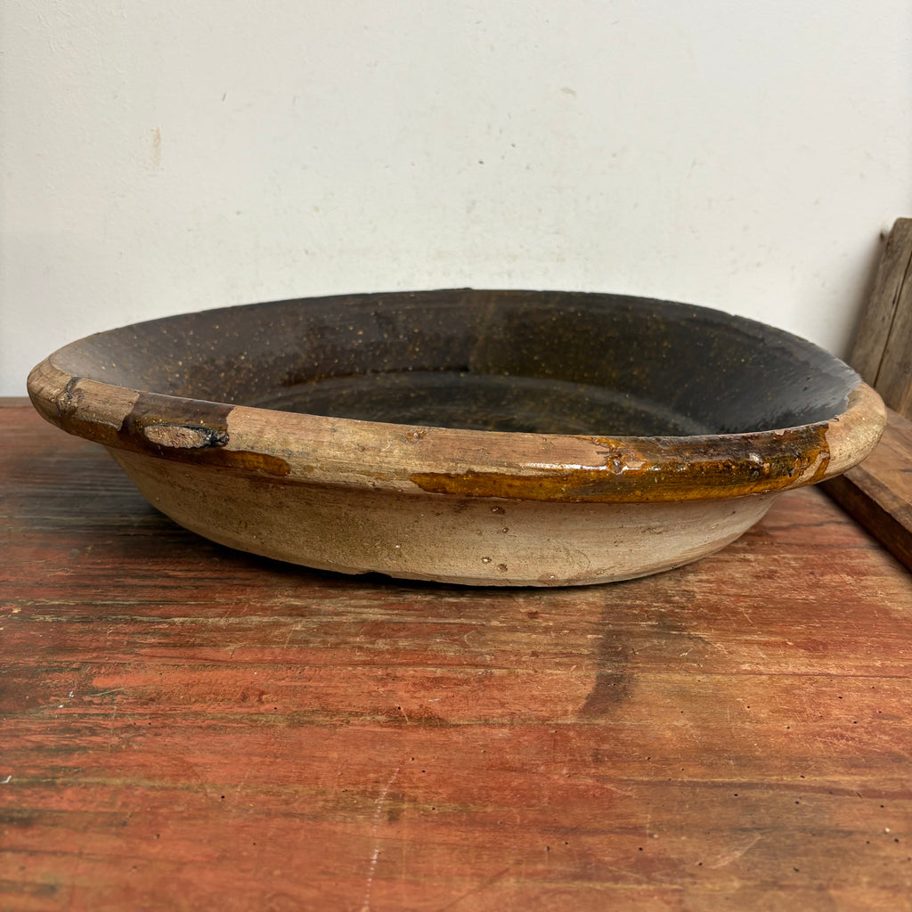 Große antike Confit Pasteten Tonschale aus Südfrankreich