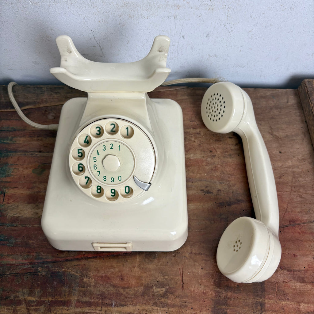 Vintage Wählscheiben Telefon W48 in weiß elfenbein